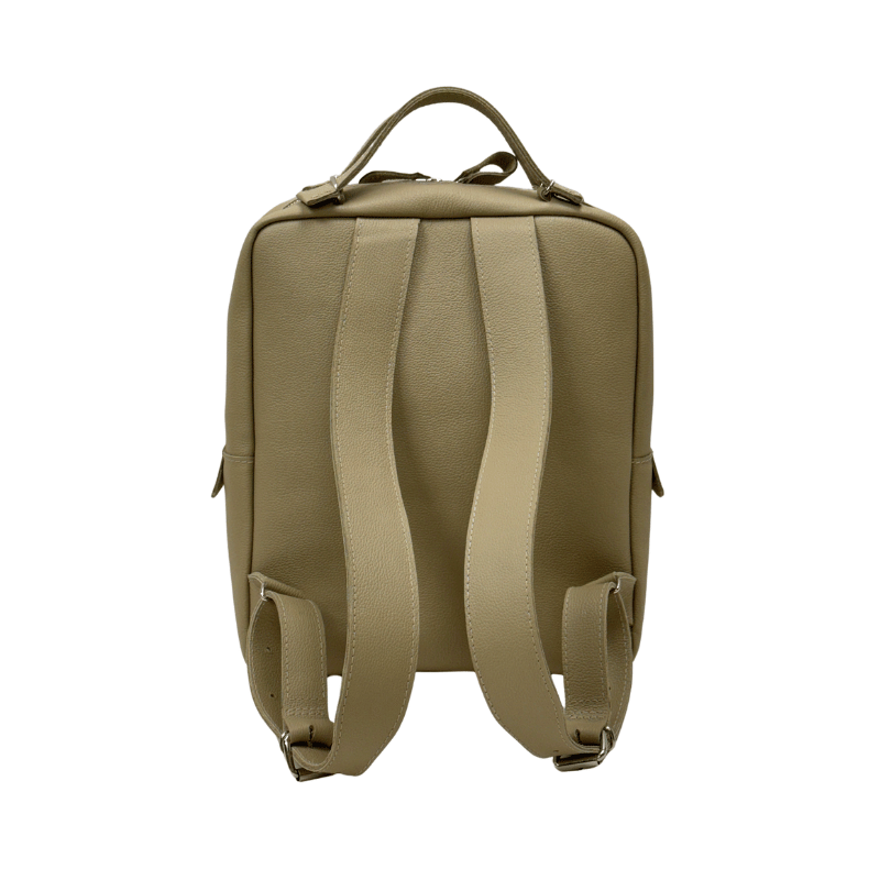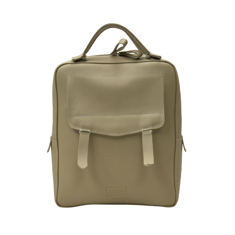 - Backpack closes with a metal zip