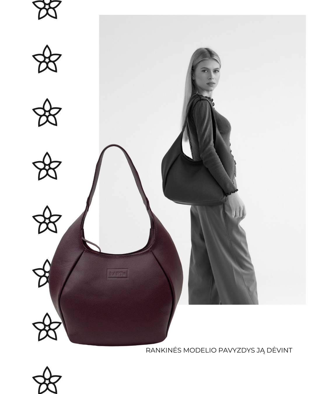 The term “natural“ itself prompts that this kind of leather may feature certain characteristic qualities such as small marks or scratches. When owning a leather product you shall understand that it changes together with you over time. There are special products that can help when taking good care of your leather bag. Natural beeswax products are very effective when wanting to hide scratches or unevenness that naturally appear over time. During the wet/cold season of the year we strongly recommend to use impregnant as it will protect your bag from rain and snow. We would like to advise that shoe impregnants might not always be the best choice for leather bags, so we recommend testing it before using all over – spray some product on the small, not so visible area of your bag and make sure it doesn’t leave any unwanted stains and do no harm to the leather. It’s a great habit to always check any product you want to use on your bag first. Natural leather handbags should be impregnated at least one time per season. If the bag that you own is from lacquered leather – it doesn’t need to be impregnated as this type of leather might react in a very different way. Keep your bag hidden from the direct sunlight and don’t leave it in a humid place for too long – this may affect the colour. If your handbag accidentally got wet, be patient and simply dry it at the room temperature. Do not put it near the open fire, radiator or any other kind of heater. Also, do not use a hair dryer or an iron.
