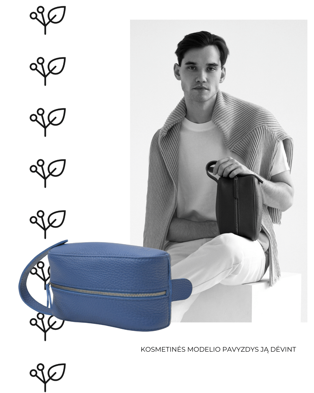 - Tvirtas, lengvai atsegamas užtrauktukas bei odinė kilpa patogiai paimti/pakabinti kosmetinę.