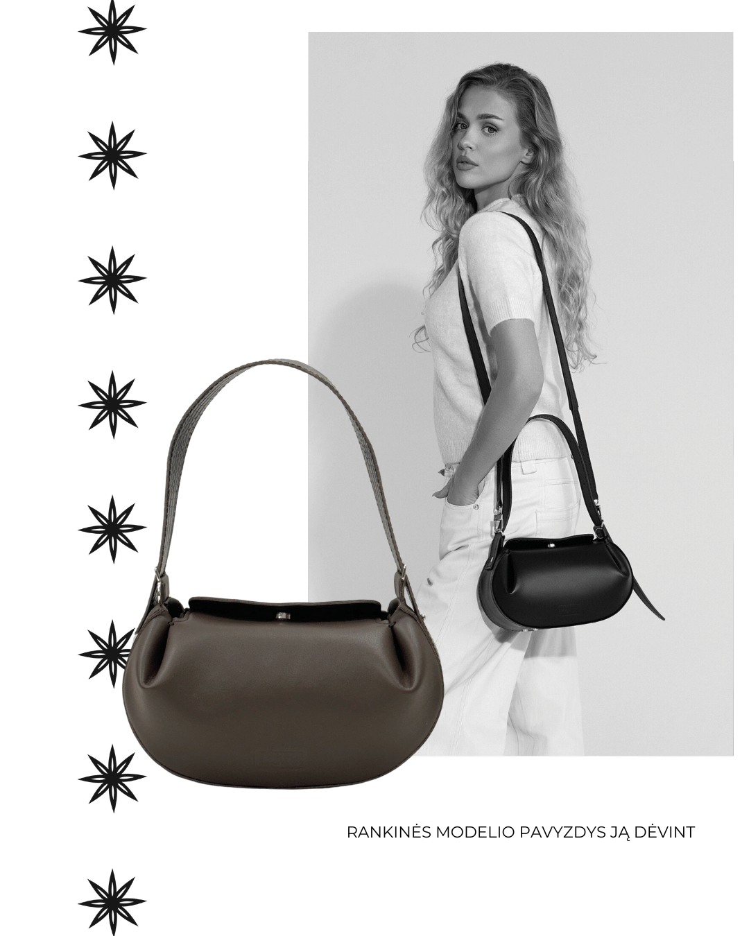 - Rankinė turi vieną platų dirželį, kuris yra skirtas neštis rankinę rankoje.