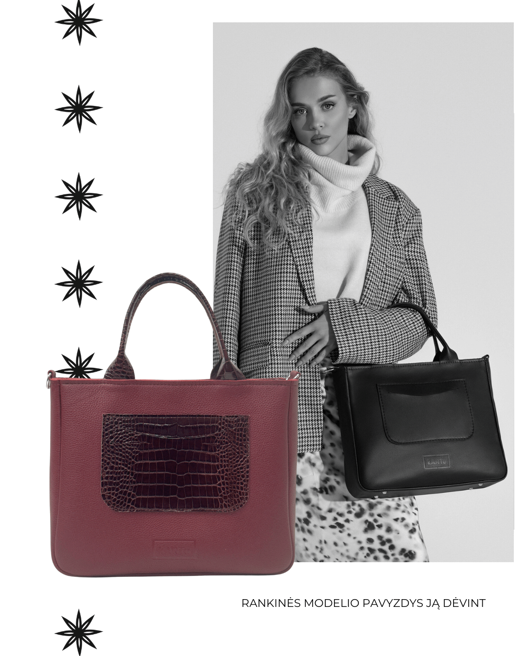 Rankinė „Vanilė“ – žaisminga ir ryški asmenybė. Ji nebijo spalvų ir netradicinių stiliaus sprendimų. Rankinė vizualiai maža, tačiau čia vietą puikiai ras A4 formatas ir visi gyvenimo atributai, kurie lydi moterį kasdien. „Vanilę” patogu nešioti dvejopai: tiek ant peties, tiek rankoje.