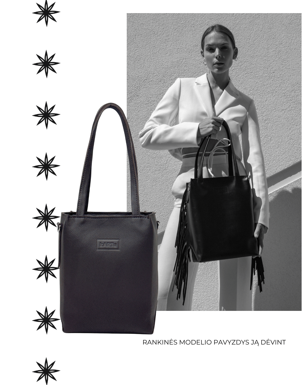 Talpi rankinė ,,Asiūklis” – patogumą derina su žaismingumu ir primena – svarbiausia išlaikyti balansą. Tai švari ir aiški rankinė nesiblaškančioms tarp įmantrių detalių, tačiau norinčioms išsiskirti iš nuobodžių mados štampų! Paprastą maxi rankinės formą pagyvina ilgi, laisvai krentantys kutai, tad Asiūklis gyvybės suteiks tiek kasdieniams ir praktiškiems deriniams, tiek smagiems šventiniams įvaizdžiams.